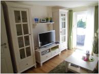 Das hell eingerichtete Wohnzimmer ist mit großem TV-Flachbildschirm mit SAT-TV in HD Qualität mit CD-Player ausgestattet.